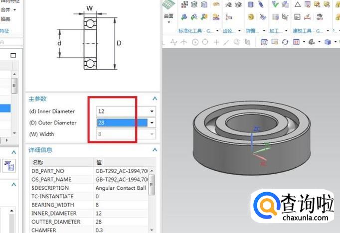 UG10.0中如何快速地创建12x28x8的深沟球轴承