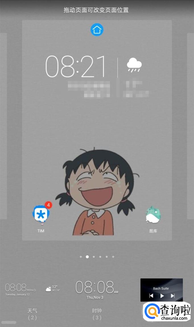 打开华为手机,进入手机主页。长按手机主页中的空白部分,进入图二页面。