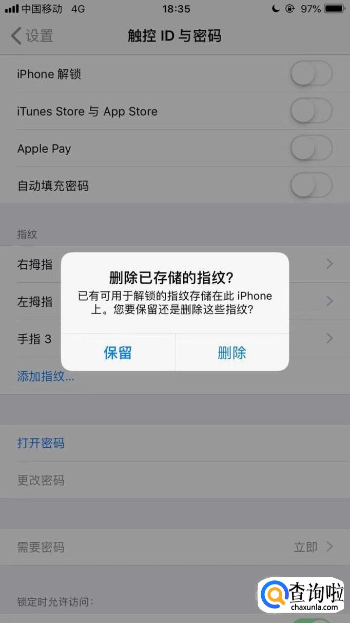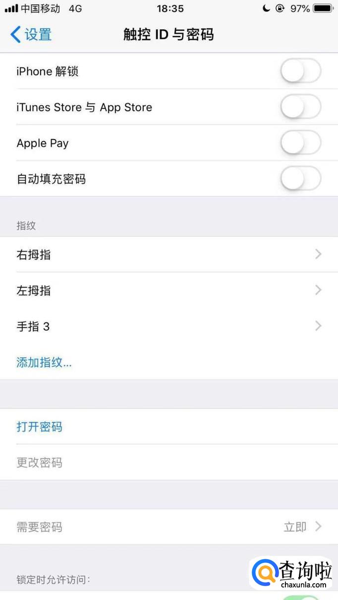 然后点击触控id与密码,如下图所示。