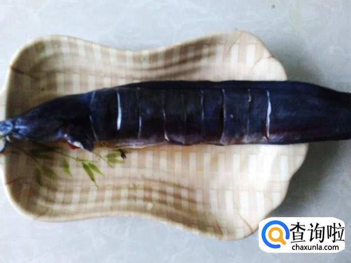 塘角鱼内脏清出来洗干净,在鱼面打一条条深痕