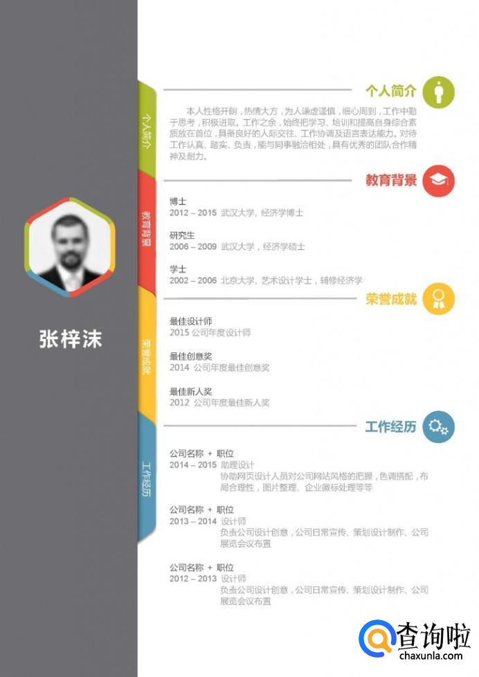 个人基本情况建议简单突出重点,就不多说了。