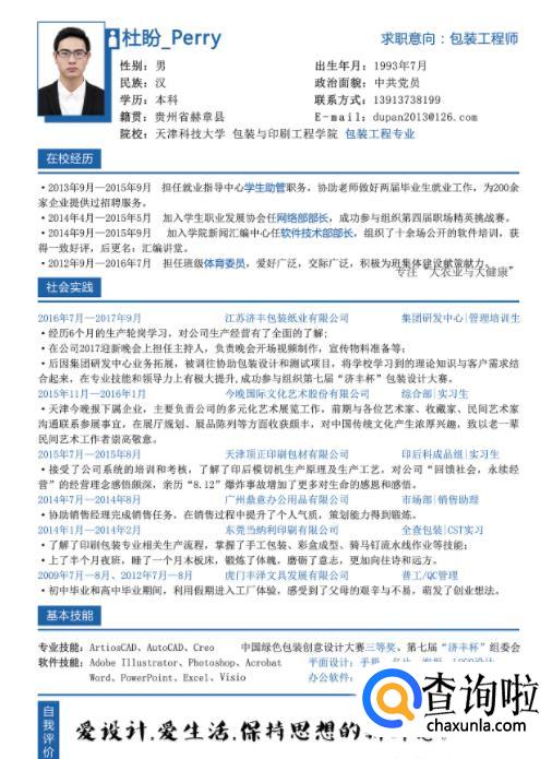 我觉得简历搞个一两页够了,最好不要超过三页。如果不是记者、设计师等职位的特殊要求,不建议附上个人作品和获奖证书复印件,只要在简历里提到就行。如果面试后公司对你确实有兴趣,再提供不迟。 - 012