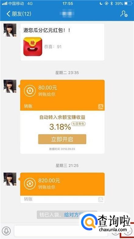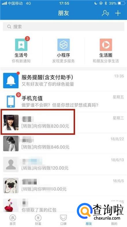 接着点击一个支付宝好友对话框,如下图所示。