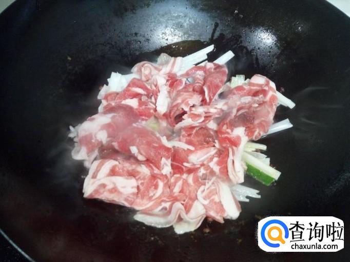 随即放入羊肉卷,大火快速翻炒,不要下汤。