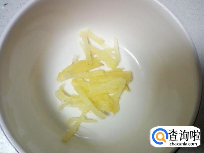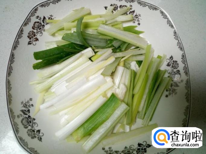 大葱清洗干净,控干水分,切成宽丝。姜去皮,用水清洗干净,控干水分,切成丝。