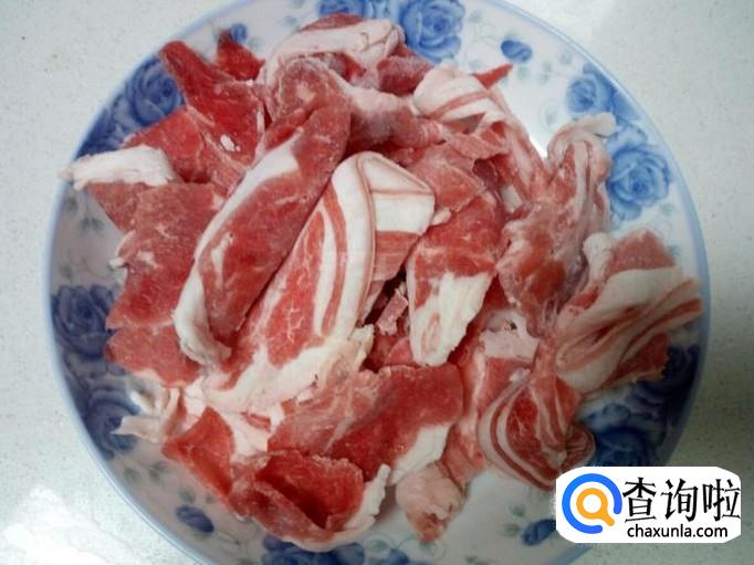 冷冻的羊肉卷,提前拿到常温处,软化一下。稍软就可以,不要化的下水。