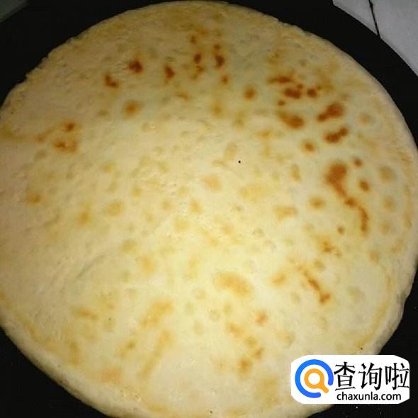 电饼铛插上电源,待电饼铛预热后,把擀好的大饼放进去,大约三分钟左右,翻另一面,烤至两面金黄熟制为止,这样陕西特色锅盔就做好了。