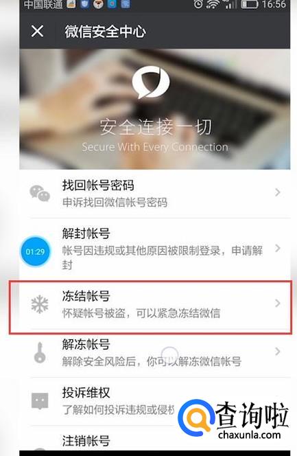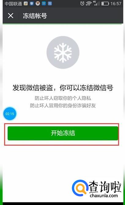 如果怀疑微信号被其他人盗取,可以点击“冻结账号”