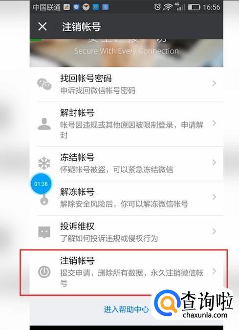 也可以点击“微信安全中心”,注销账号。