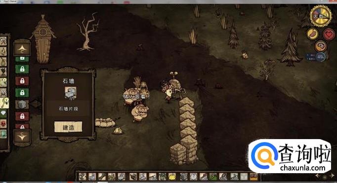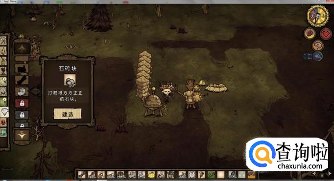 再利用炼金术引擎以石砖块为原料解锁石墙原型体。每两个石砖块可制作六个石墙。这样石墙的制作便已完成。