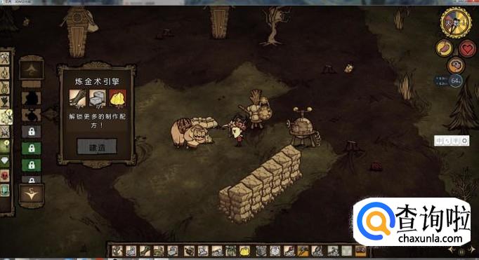 利用科学仪器和已生产的石砖块加上黄金和木板制作炼金术引擎。