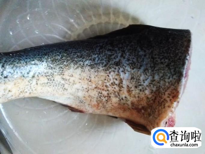 河鱼把头斩出来,然后把鱼清理干净,再切成一块块。