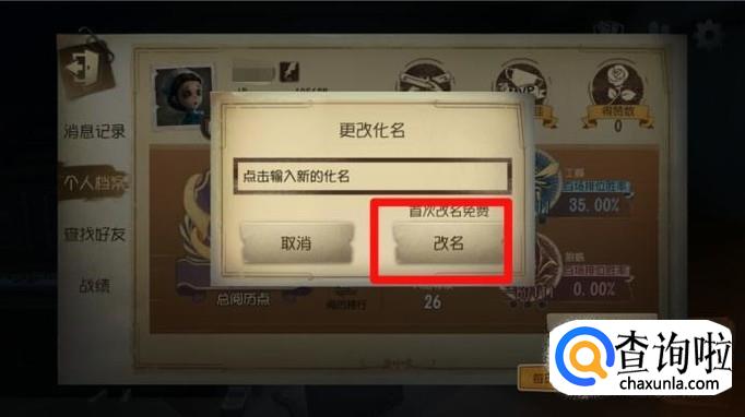 点击修改昵称的按钮,然后输入自己的新昵称,不能跟其他人重复哦,而且首次改昵称是免费的。