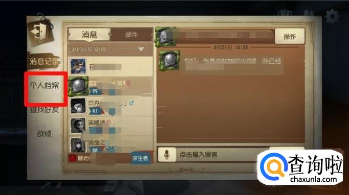 进入好友消息界面之后,点击“个人档案”,就可以进入个人界面,有自己的详细资料哦。