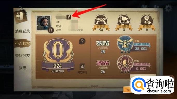 在个人档案界面,我们可以看到自己的昵称,在昵称的旁边有一个笔的符号,这就是修改昵称的入口。