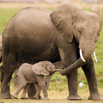 刚刚出生的幼仔的体重约为109千克,雌兽每次需要喂1千克左右的奶,而它所要做的只是寻找到雌兽的奶头在什么地方,然后本能地去吸奶。 幼仔呆在雌兽身边倍感安全,随着身体渐渐长大,眼睛和耳朵也越来越灵敏,自信心也增强了,但偶而也还会走失,不过当它们需要帮忙的时候,家族的其他的成员总是应声而来。
