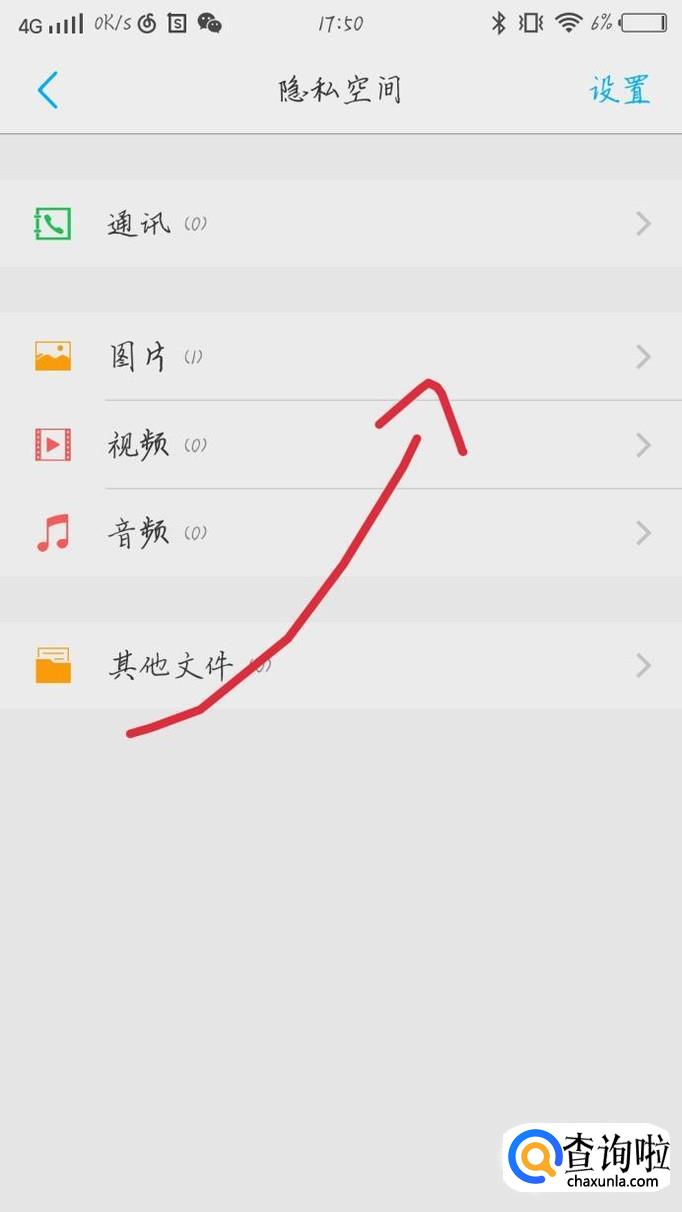 点击“隐私空间”选项,如图1箭头所示。你会看到进入一个新的界面,如图2所示。