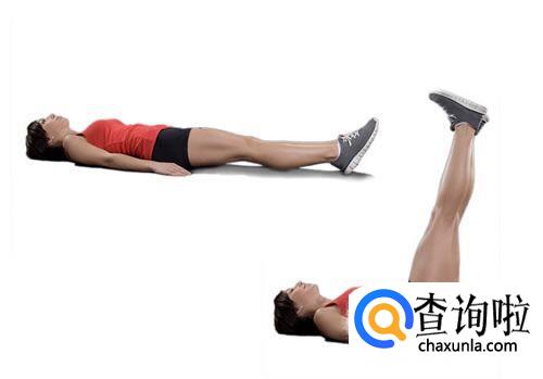 完成上述动作之后,就可以开始下一个循环的动作了,平躺在地面,双手自然放在两侧,保持双腿伸直,往正上方抬高,这时背部与头部需要保持贴合地面地,坚持这个姿势4秒左右就可以了,然后重复。