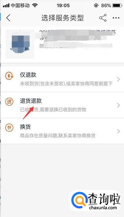 申请售后时有几个选项可以选择,我们点击退货退款即可。