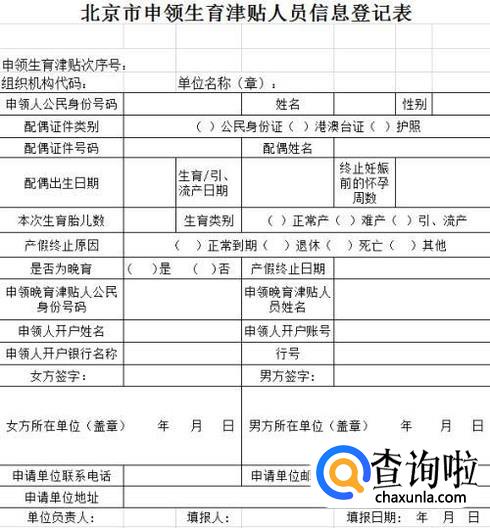 申请生育津贴的时候,各个地区,各个省市可能在细节上有一些不同,但大体来说都是需要填写申请单据的。这里我们可以以北京为例,大家可以看一下下图所示的需要填写的信息。