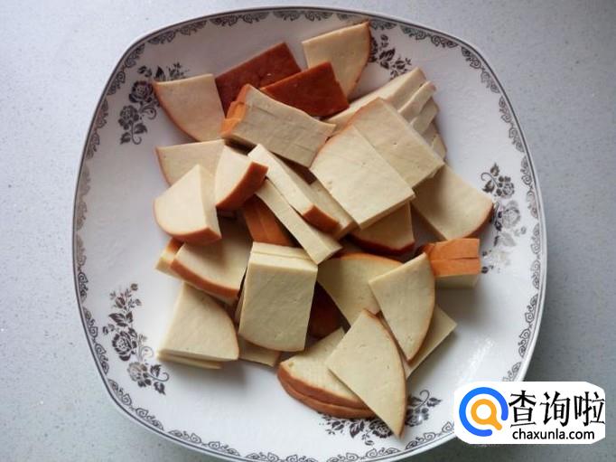 锅内放入油加热,油热后放入花椒,葱,姜,蒜,爆锅。放入素鸡翻炒,放入料酒,少许耗油。