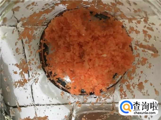 处理红萝卜。红萝卜先去掉表面的皮,然后清洗干净,接着将萝卜切成几块,小块一点,这样才能让萝卜更好地被绞碎成末,也是用绞肉机绞,这样能节约很多时间。