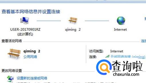 第二种方法是进入电脑的“网络和共享中心”,点击右边的“无线网络连接”。