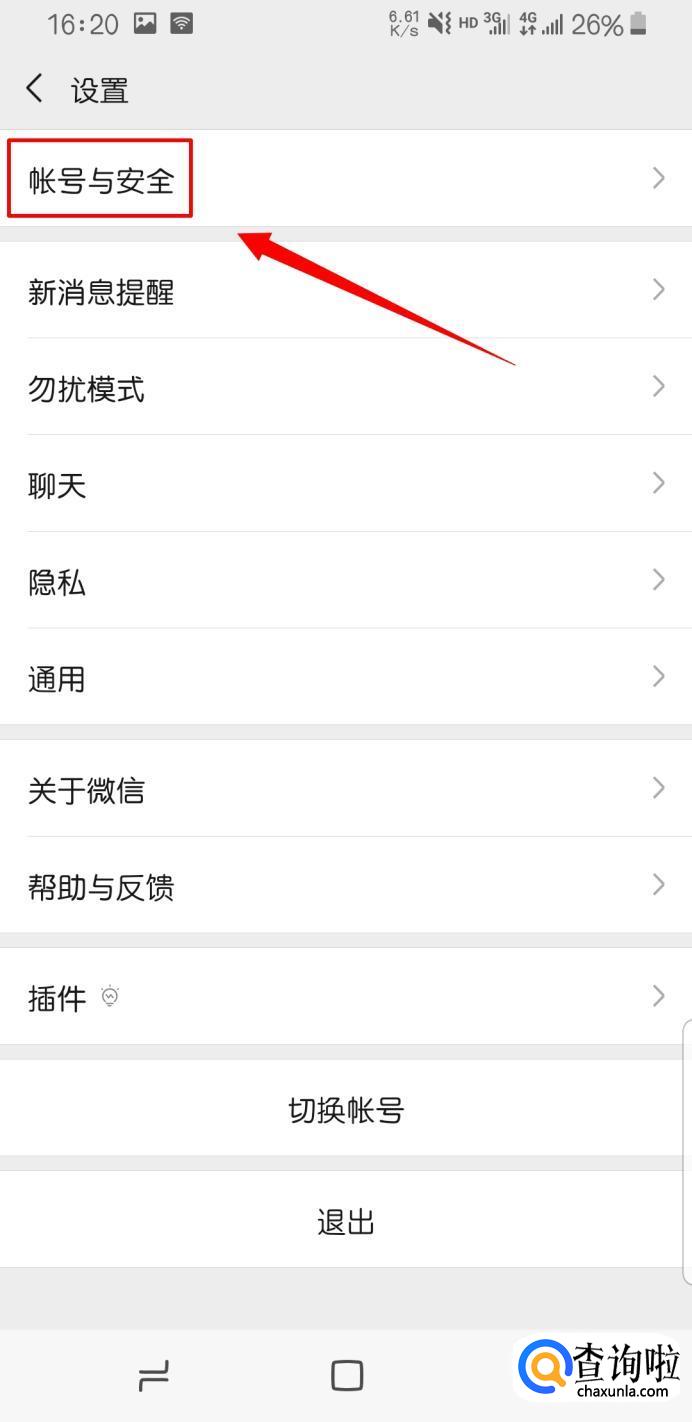 在“设置”页面下。点击“账号与安全”。