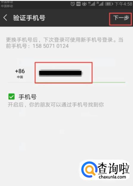 然后,我们点击新的手机号码,之后我们点击下一步就可以了,此时我们重新点击登录就会发现微信所有的好友以复制在另一个号上。