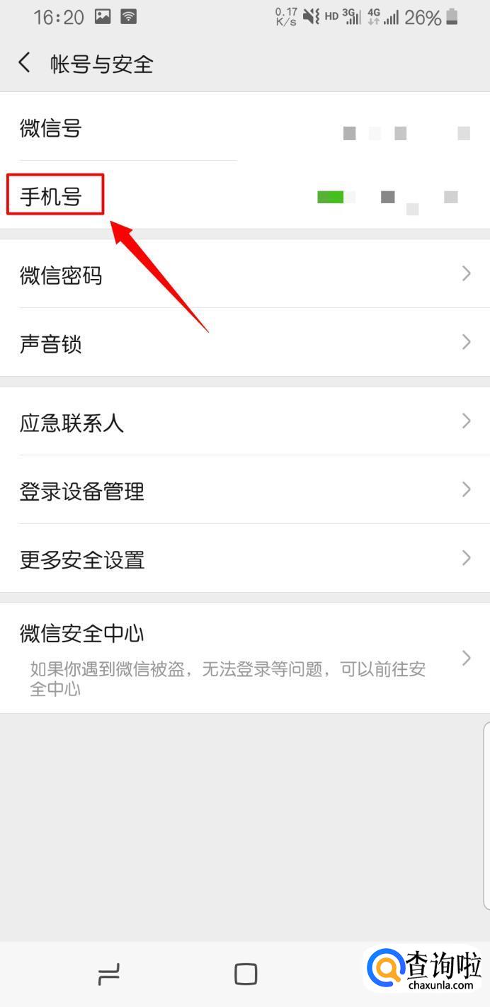 在“账号与安全页面下,点击“手机号”。