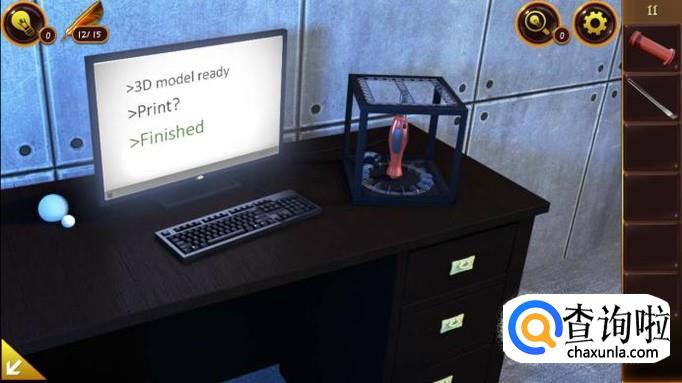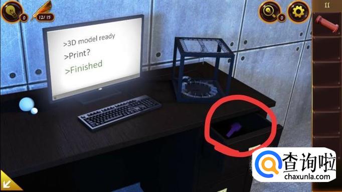 进屋点击电脑上的YES,得到螺丝刀的把手。在抽屉里得到一把钥匙。