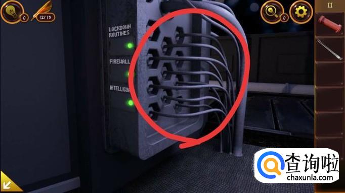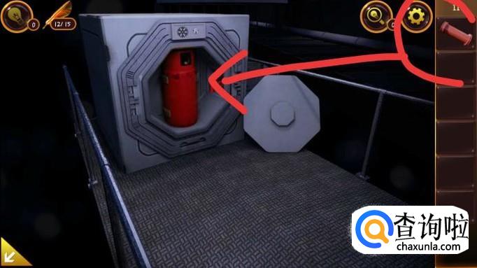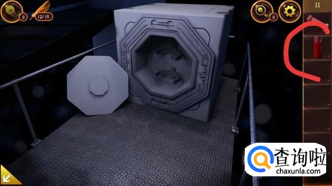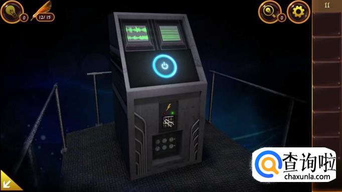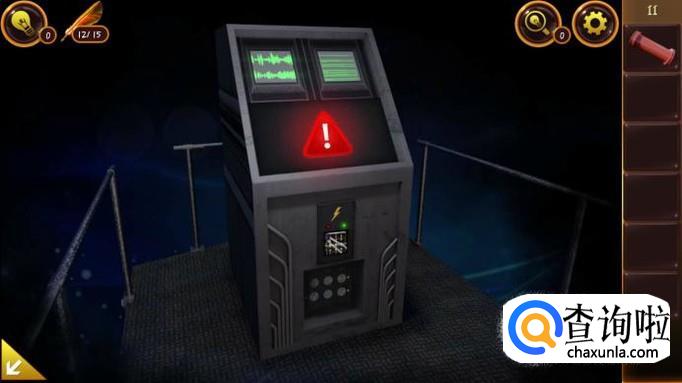 此时中间的机器会出现开关,点击开启后,在楼上会出现黑洞,点击即可逃脱。