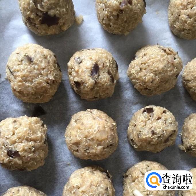 把茄子、藜麦、葱&剩下的原料放在碗里。混合均匀,形成咬大小的球。在华氏350度烘烤20分钟。