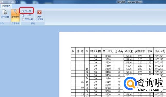 在预览界面下, 可以看到每一页都带着标题行,如图所示,我们直接打印即可。