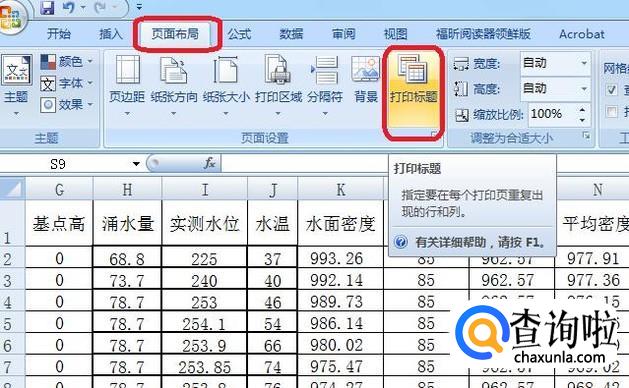 点击菜单栏“页面布局”,然后点击“打印标题”。