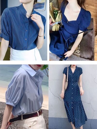 冷色系里的蓝色在夏天特别受欢迎,因为蓝色是夏天的带盐人,蓝色的连衣裙、蓝色的衬衫、蓝色的牛仔和蓝色西装外套,不但颜色高级而且还特显气质,格外的清爽透亮。