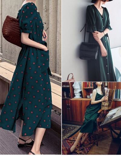墨绿色大气高贵,除了提升气质,还隐藏着丝丝的稳重和成熟气息,皮肤黑的上班一族,建议尝试墨绿色的服饰搭配,沉稳中带着大气,让你的夏季穿搭加分。