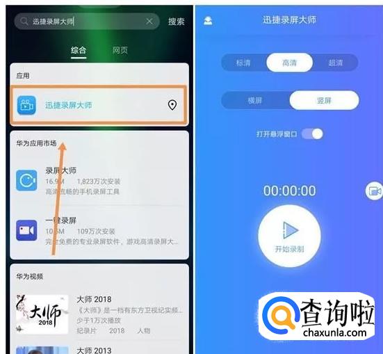 比如我需要录屏和投屏,在负一屏中搜索“迅捷录屏大师”,就能很轻易的找到这款软件。