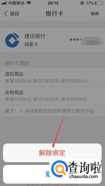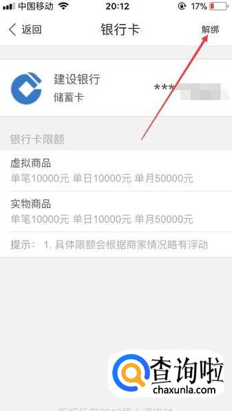 此时会进入到该银行卡页面,接着点击右上角的【解绑】功能。