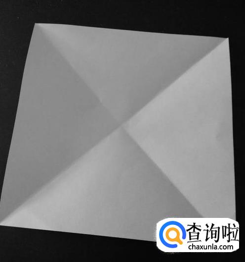 第一步就是将纸斜对折后再打开,四个角都要折到。
