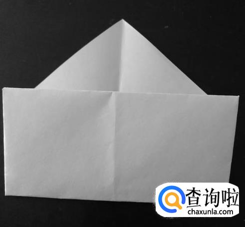 接着将最下端再沿左右两个三角形上横着的折痕折上去,如图所示: