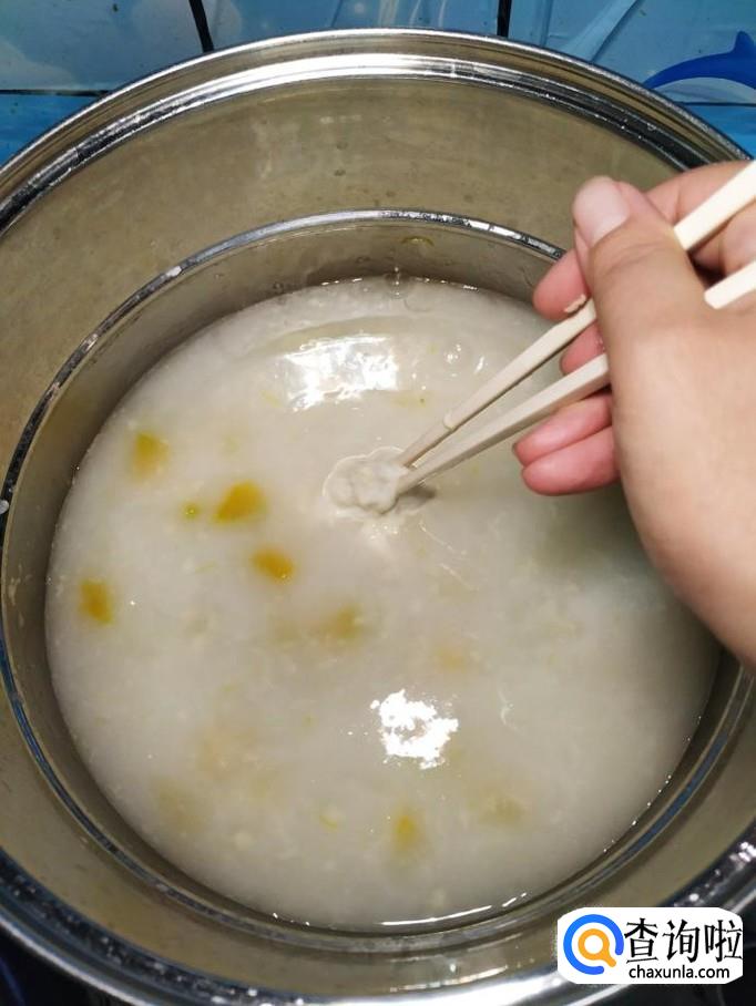 将涮出来的面糊水倒入锅中,快速搅拌一下,然后再接一些清水,再继续涮一下,重复这个步骤,到最后,碗里只剩下面筋。然后将面筋放到锅中,用筷子迅速搅拌一下,将面筋搅开,散开后成面疙瘩。