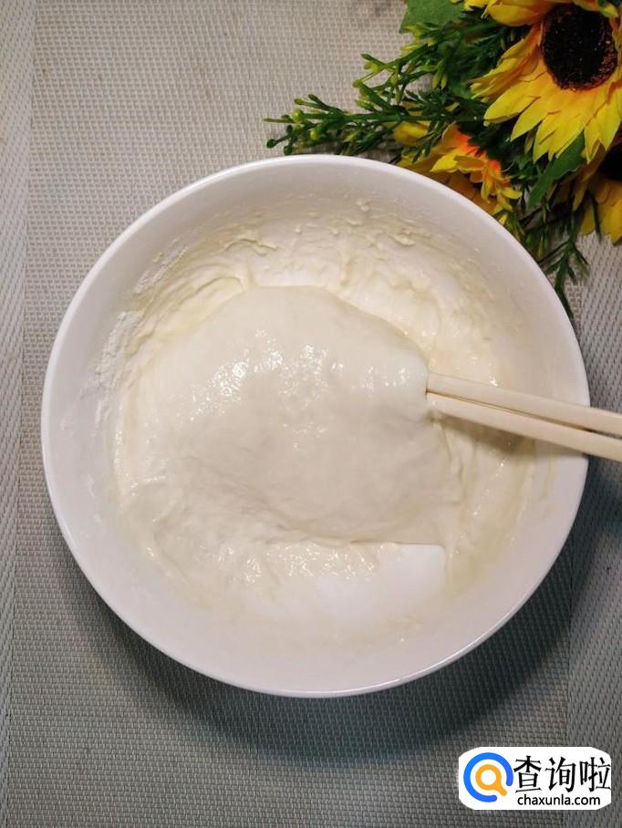 碗中放入适量面粉,加少许清水,搅成面糊,这个可以稍微稠一些,越稠,越利于面筋的生成。放置半个小时左右,再搅拌一下,搅拌至表面光滑,倒入适量清水,泡一会儿。