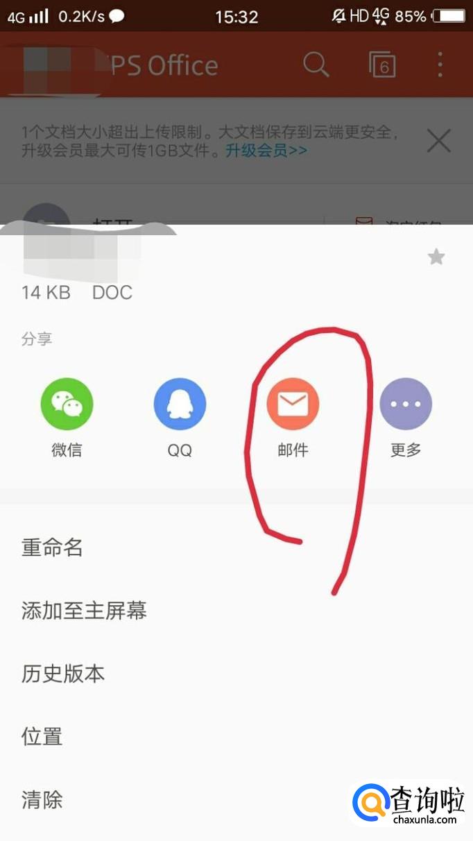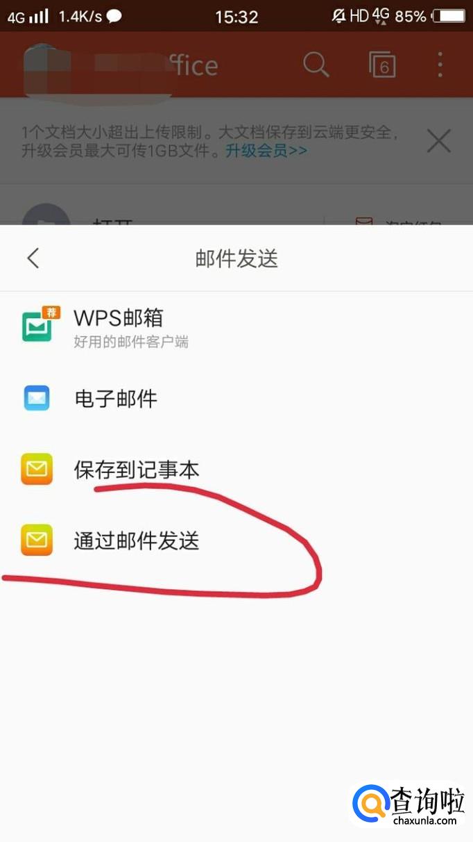 然后点击通过邮件发送。