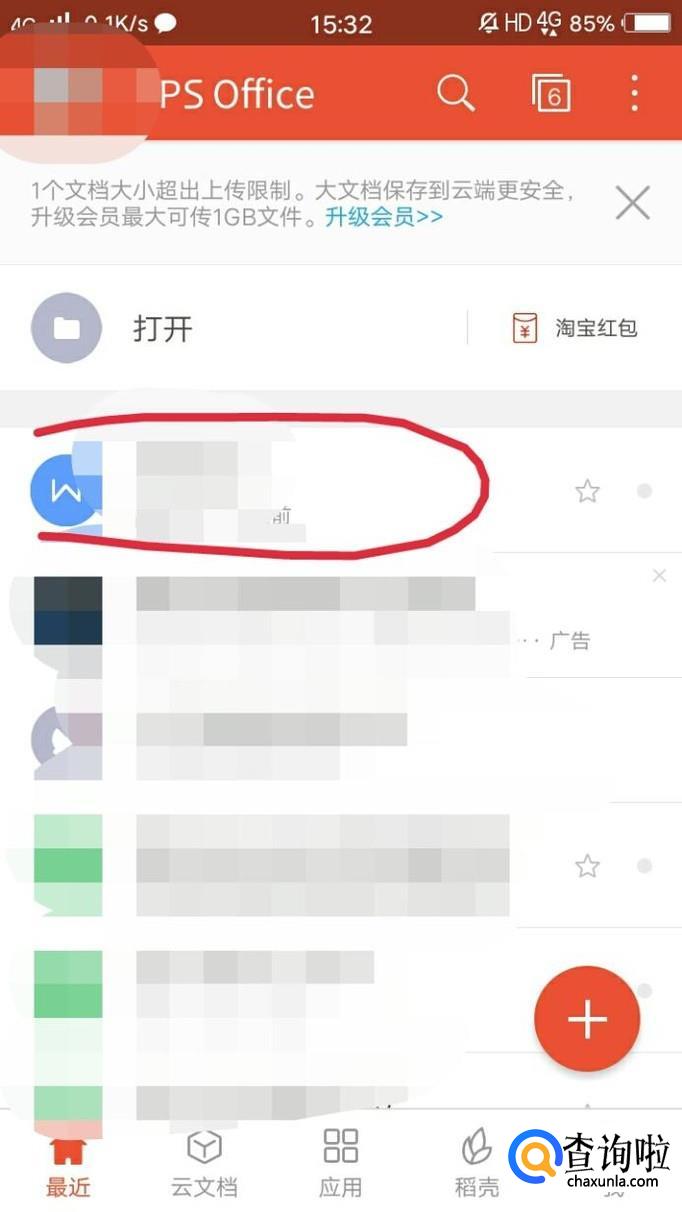 首先打开WPS,长按需要发送的文件。
