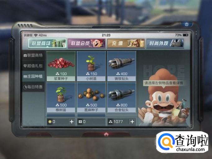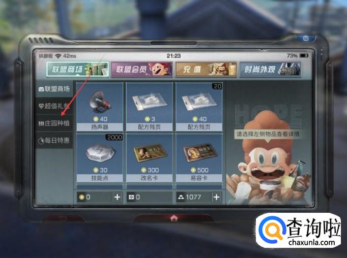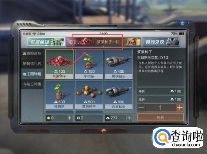 玩家想要获得种子,需要在游戏界面上方的【拱廊街】里购买。