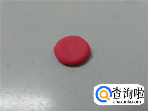 先将一团粉色橡皮泥团成圆球,再按成扁片儿。当做小猫的头。