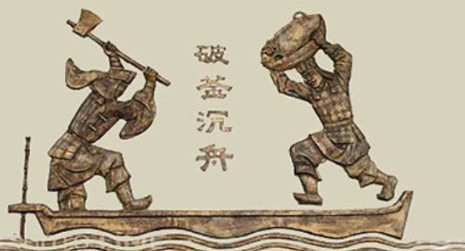 渡河后,项羽命令全军:“项羽就率领全部军队渡过漳河,把船只全部弄沉,把锅碗全部砸破,把军营全部烧毁,只带上三天的干粮,以此向士卒表示一定要决死战斗,毫无退还之心。”巨鹿一战,大破秦军,项兵威震诸侯。