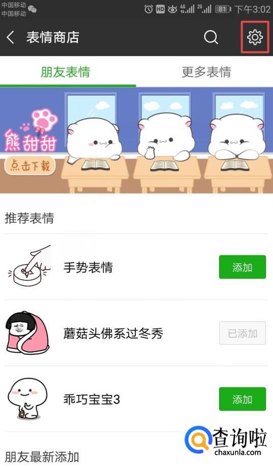 之后我们就可以看到刚刚选中的那个表情包被我们移除了,也就是被我们删除了。