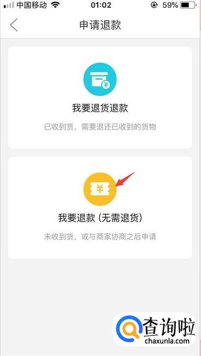 进入到申请退款的页面后自行选择仅退款还是退货退款,下面小编以仅退款为例。